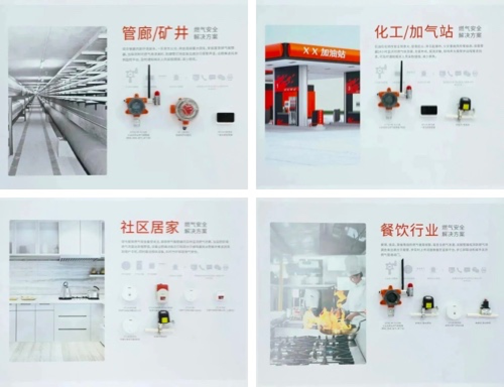 This solution has obvious advantages, stable performance, multiple types of gas detection, multiple communication methods, and multiple installation methods such as embedded, 86 box, and flat installation. It has low construction difficulty and can be widely used in pipeline galleries, mines, chemical engineering, gas stations, communities, restaurants, and other places, and has received unanimous praise from on-site audiences.