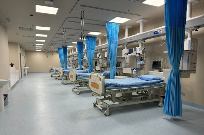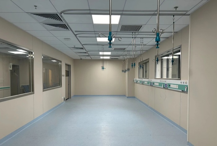 The negative three medical radiotherapy area, negative EICU, negative emergency center, negative layer, CT room, one layer of intravenous fluid center, second layer imaging center, respiratory medicine, DSA, three, inspection center, three gynecology, obstetric outpatient operating room, four digestive endoscopy, four daytime operating room, four pathology, four stomatology, five surgery center, five surgery department changing area, five ophthalmology clinic, six ICU, six blood transfusion, six purification equipment room, seven hemodialysis, eight obstetrics, nine NICU, ten PICU, 11 C arm room, 13 floor burn disease Room, 16-floor ophthalmic operating room and 18-floor CCU total about 23,000 square meters, A total of 26 departments, The construction is completed by Vida Medical.