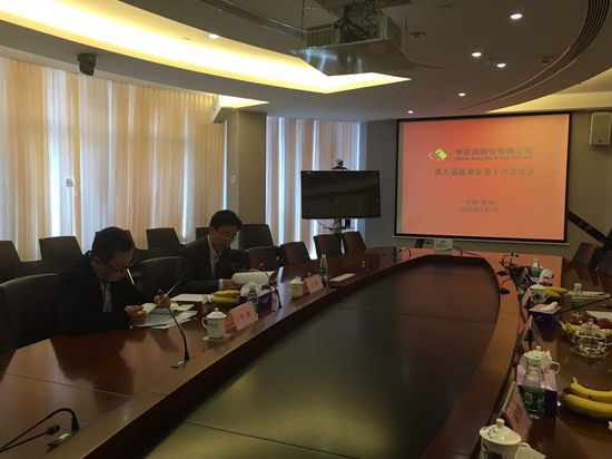 China Security & Fire Co., Ltd. held the 21st Meeting of its 9th Board and 16th Meeting of the 9th Supervisors Committee on April 7, 2016. Resolutions such as “Resolution on the Plan for Non-public Offering of Debentures” and “Resolution on Establishment of A Wholly-owned Subsidiary in Shanghai” were passed in the Directors’ Meeting. The “Resolution on Supplementing Supervisors” was passed in the Supervisors’ Meeting.