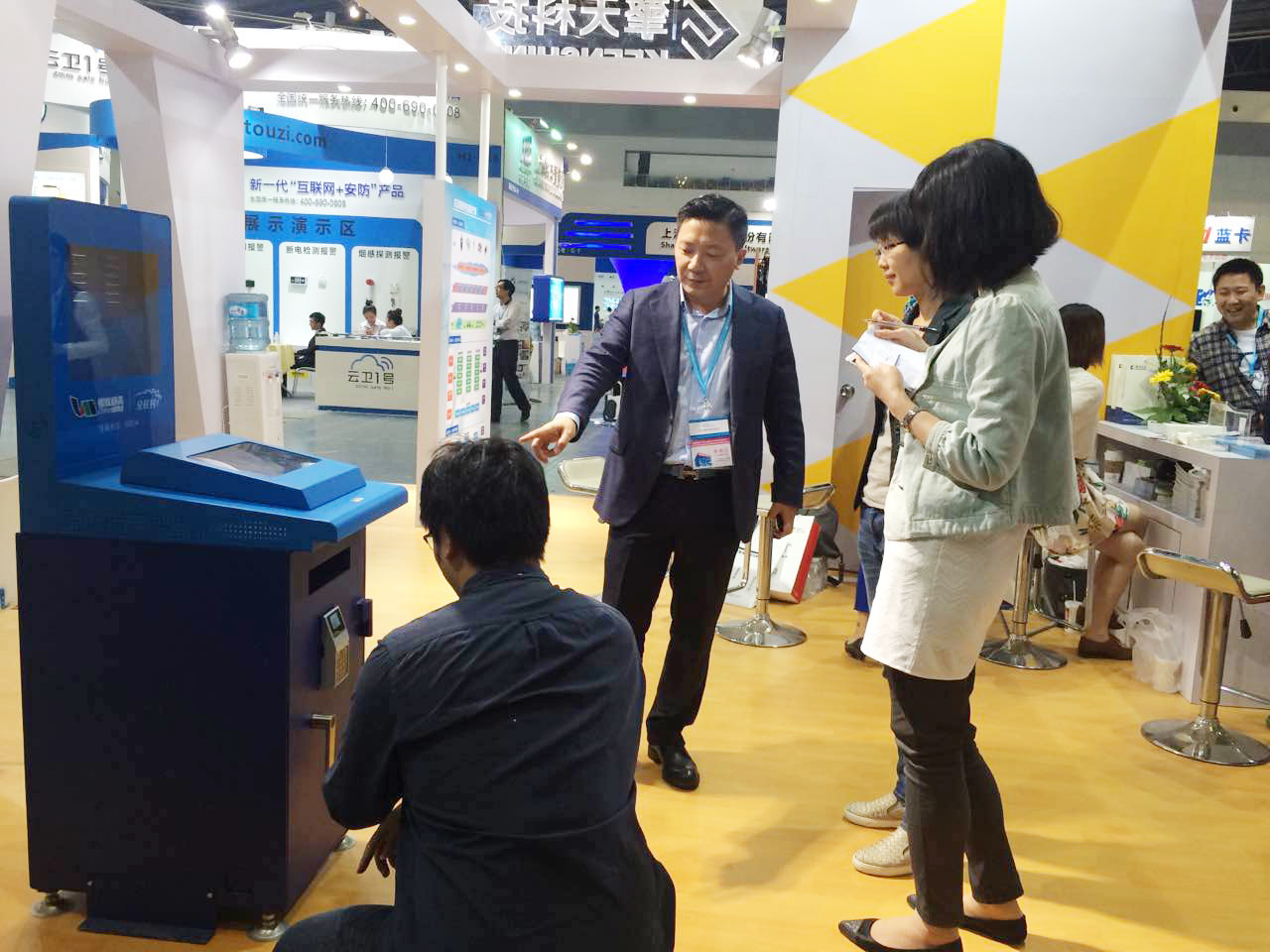 講解人員為觀眾展示ATM動(dòng)態(tài)密碼鎖及運(yùn)維管理物聯(lián)網(wǎng)智能化監(jiān)管方案