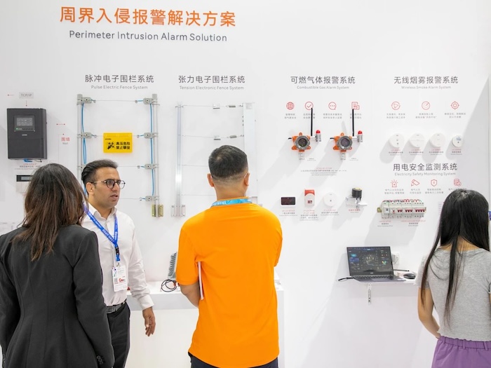 周界入侵報警解決方案現(xiàn)場展示了脈沖電子圍欄系統(tǒng)和張力式電子圍欄系統(tǒng),由管理軟件、圍欄主機、控制鍵盤和前端探測圍欄組成,報警功能豐富,具備多種聯(lián)網(wǎng)與對接方式,系統(tǒng)兼容性強,可提升周界安全等級,廣泛應用于小區(qū)、學校、工廠、機場、醫(yī)院等場所的周界防護。