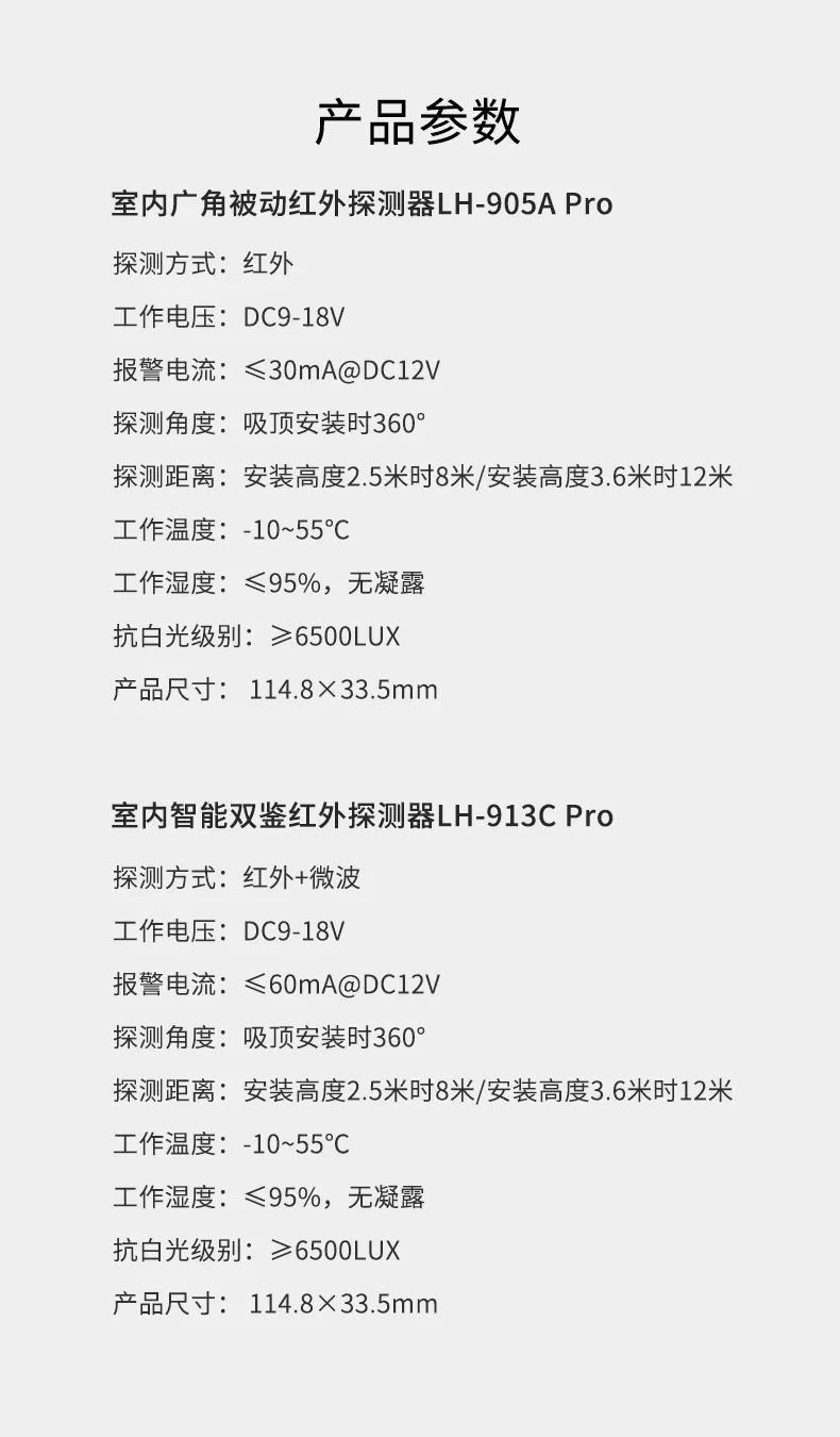 室內(nèi)廣角被動紅外探測器 LH-905A Pro 、