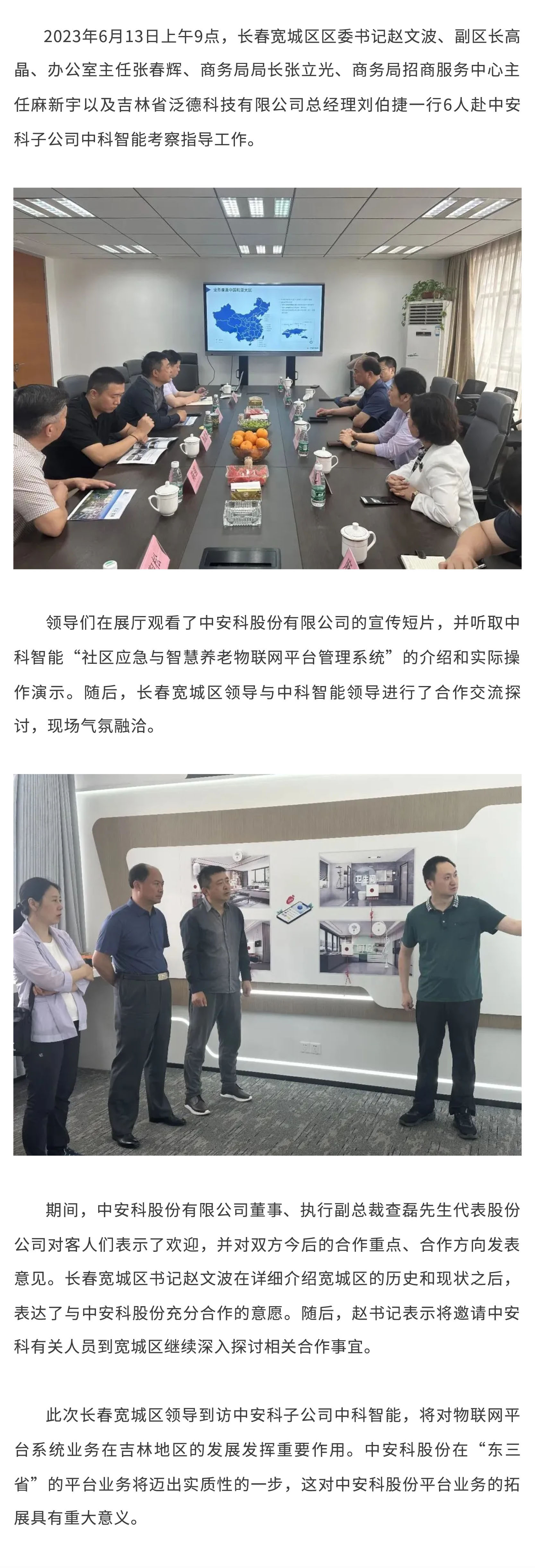長(zhǎng)春寬城區(qū)領(lǐng)導(dǎo)赴中安科子公司中科智能考察指導(dǎo)工作