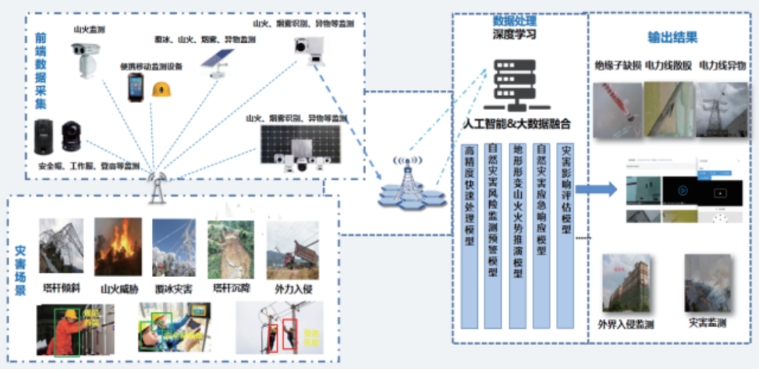 輸電線路可視化 AI 終端設(shè)備可以實(shí)現(xiàn)輸電線路通道環(huán)境、隱患部位、設(shè)備狀態(tài)、作業(yè)現(xiàn)場(chǎng)、應(yīng)急搶修、山火防范六個(gè)可視化。