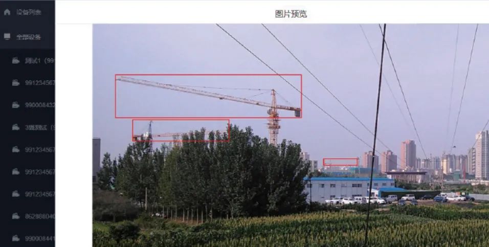 通過(guò) AI 智能識(shí)別分析視頻畫(huà)面,可以對(duì)施工機(jī)械(吊車、塔員、挖掘機(jī))、異物懸掛、煙火等進(jìn)行識(shí)別。
