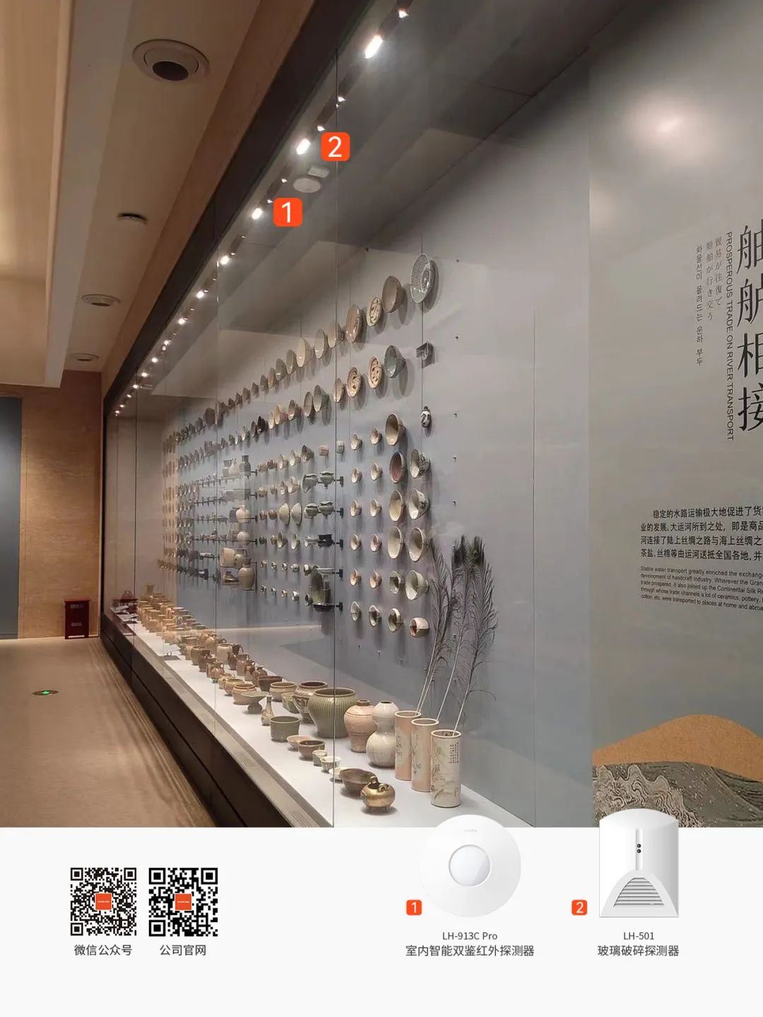 而在每個(gè)展柜內(nèi)部,豪恩也安裝了玻璃破碎探測器,及時(shí)感知對展柜的惡意敲擊、爆破以及高低溫攻擊等破壞行為,為珍貴的文物筑起第二道保護(hù)墻。