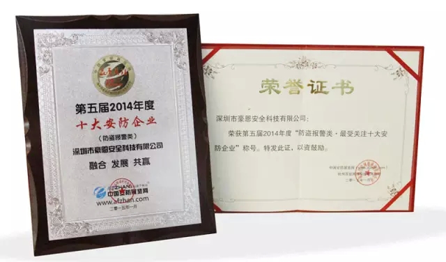 2015年3月16日,由中國(guó)安防展覽網(wǎng)主辦,備受業(yè)界關(guān)注的“第五屆2014年度最受關(guān)注十大安防企業(yè)頒獎(jiǎng)盛典暨2015年安防新技術(shù)創(chuàng)新及成果研討會(huì)”在杭州召開(kāi),豪恩安防獲得“最受關(guān)注防盜報(bào)警類(lèi)十大安防企業(yè)”榮譽(yù)稱號(hào)。