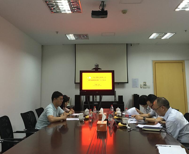 董事會會議現(xiàn)場 右排右起:董事:吳巧民(右三)、付欣(右二);左排左起:監(jiān)事:吳展新(左二)、陳亞南(左一);董事會秘書:王蕾(右一)