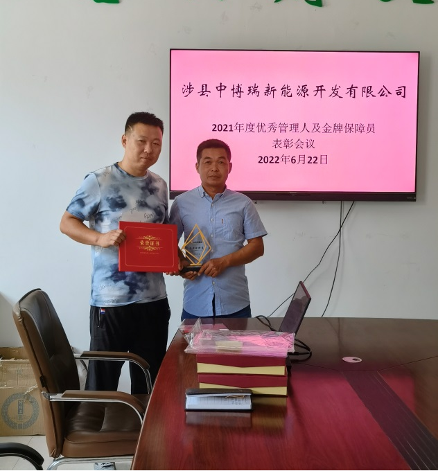 表彰大會上,由公司總經(jīng)理鄭相紅先生為陳小亮、付偉偉頒發(fā)了獎杯、榮譽(yù)證書及感謝信。