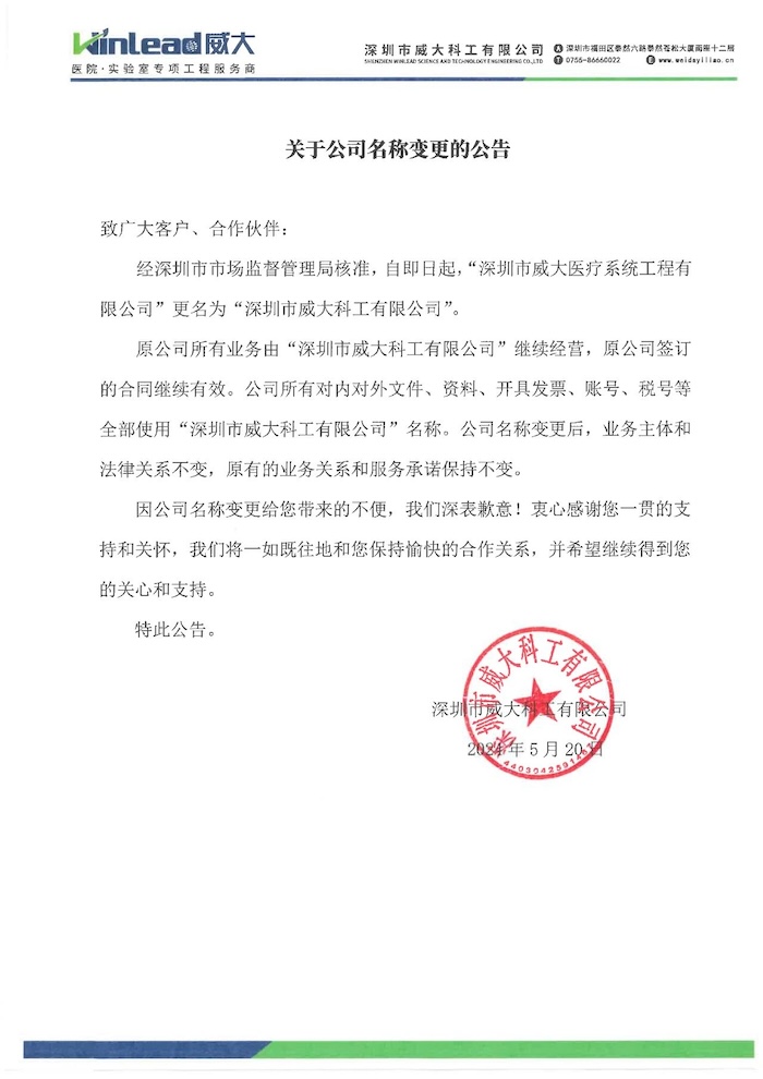 更名后,深圳威大科工所有對外文件、合同、資料、票據(jù)、賬號等將全部使用新名稱。公司業(yè)務(wù)主體和法律關(guān)系不變,原簽訂的合同繼續(xù)有效,原有業(yè)務(wù)關(guān)系和服務(wù)承諾保持不變。