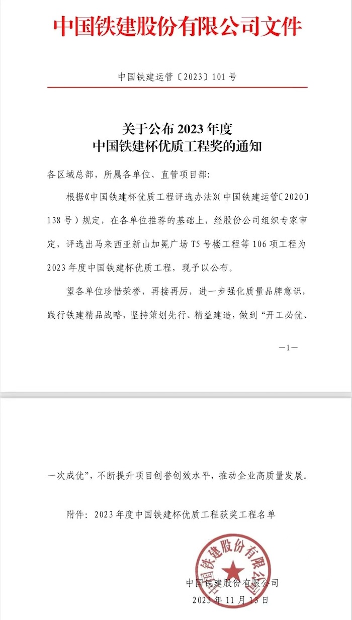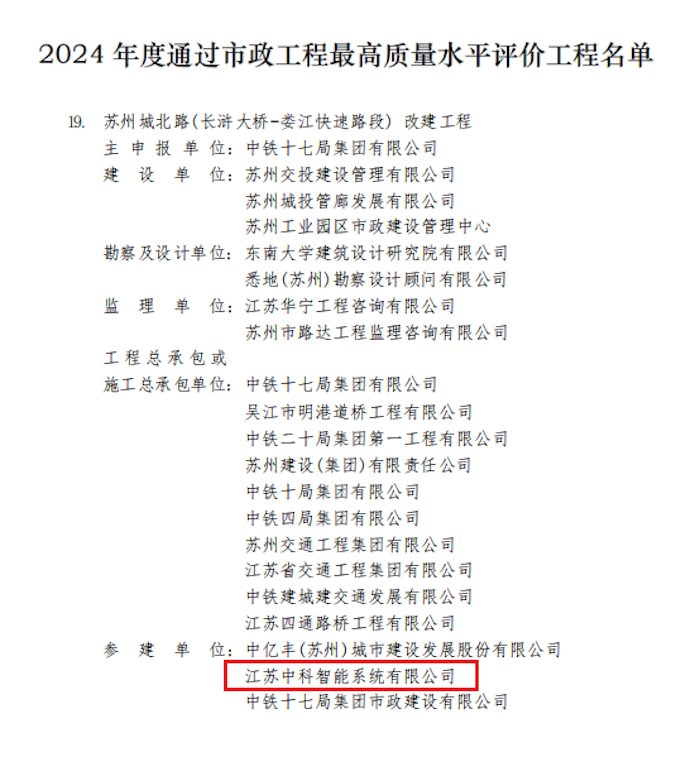在項(xiàng)目建設(shè)過程中,中科智能始終堅(jiān)持以“創(chuàng)建平安工地、鑄造精品工程”為目標(biāo),以質(zhì)量、安全為中心,嚴(yán)格按照施工組織方案實(shí)施,順利完成了各個(gè)系統(tǒng)的建設(shè)與交付?!笆姓こ套罡哔|(zhì)量水平評(píng)價(jià)”是全國市政工程行業(yè)在工程質(zhì)量方面最高的評(píng)價(jià)獎(jiǎng)項(xiàng),代表市政工程行業(yè)同時(shí)期國內(nèi)先進(jìn)水平。此次榮譽(yù)的取得,標(biāo)志著中科智能在市政工程建設(shè)領(lǐng)域又一新收獲。同時(shí),本項(xiàng)目先后榮獲過“姑蘇杯”、“鐵建杯”,體現(xiàn)了中科智能在施工管理、工程質(zhì)量、科技創(chuàng)新等方面均達(dá)到了全國市政建設(shè)行業(yè)一流水平。