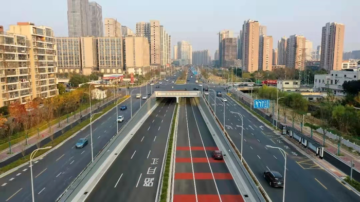 蘇州城北路(長(zhǎng)滸大橋-婁江快速路段)改建工程位于蘇州市中心城區(qū)北部,設(shè)計(jì)標(biāo)準(zhǔn)時(shí)速60公里/小時(shí),路線全長(zhǎng)約4.8km,隧道為東西向下穿隧道,起于江月路,終于江宙路,同時(shí)下穿地鐵2號(hào)線以及地鐵4號(hào)線,雙洞6車道,隧道全長(zhǎng)1.5km。