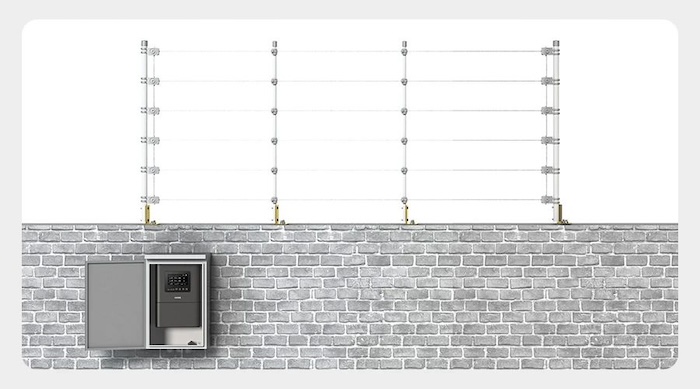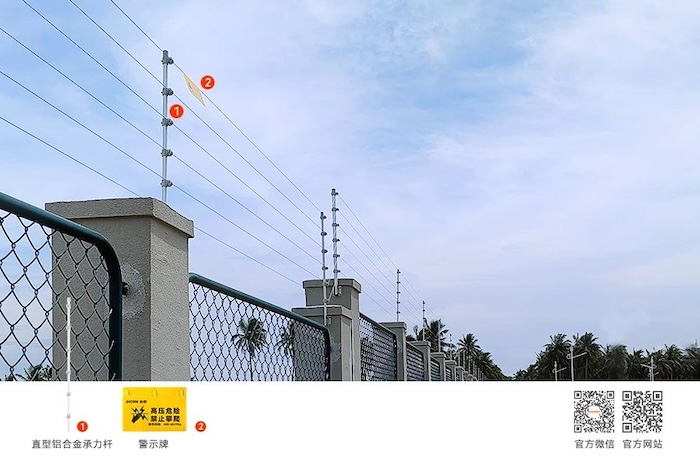 脈沖電子圍欄通常沿著圍墻安裝,區(qū)別于局限于視距和直線及平坦區(qū)域環(huán)境的紅外線、微波墻等防范系統(tǒng)。電子圍欄全天候工作,穩(wěn)定可靠,可以依據(jù)地形任意架設(shè),不受地形高低和邊界曲折形狀的限制,也不受氣候、植物、小動物等因素影響。