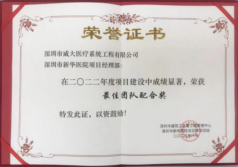 2023年1月13日,深圳市建筑工務署工程管理中心、深圳市新華醫(yī)院項目群項目組聯(lián)合召開了“2022年度新華醫(yī)院I標項目群年終總結(jié)暨優(yōu)秀表彰大會”。在這場大會上,深圳威大憑借其精細化管理體系和真抓實干的工作態(tài)度,榮獲了“最佳團隊配合獎”、“優(yōu)秀管理干部”等榮譽。這些榮譽的獲得,不僅是對深圳威大在新華醫(yī)院項目中杰出表現(xiàn)的認可,更是對其在智慧醫(yī)療領域?qū)I(yè)實力的肯定。